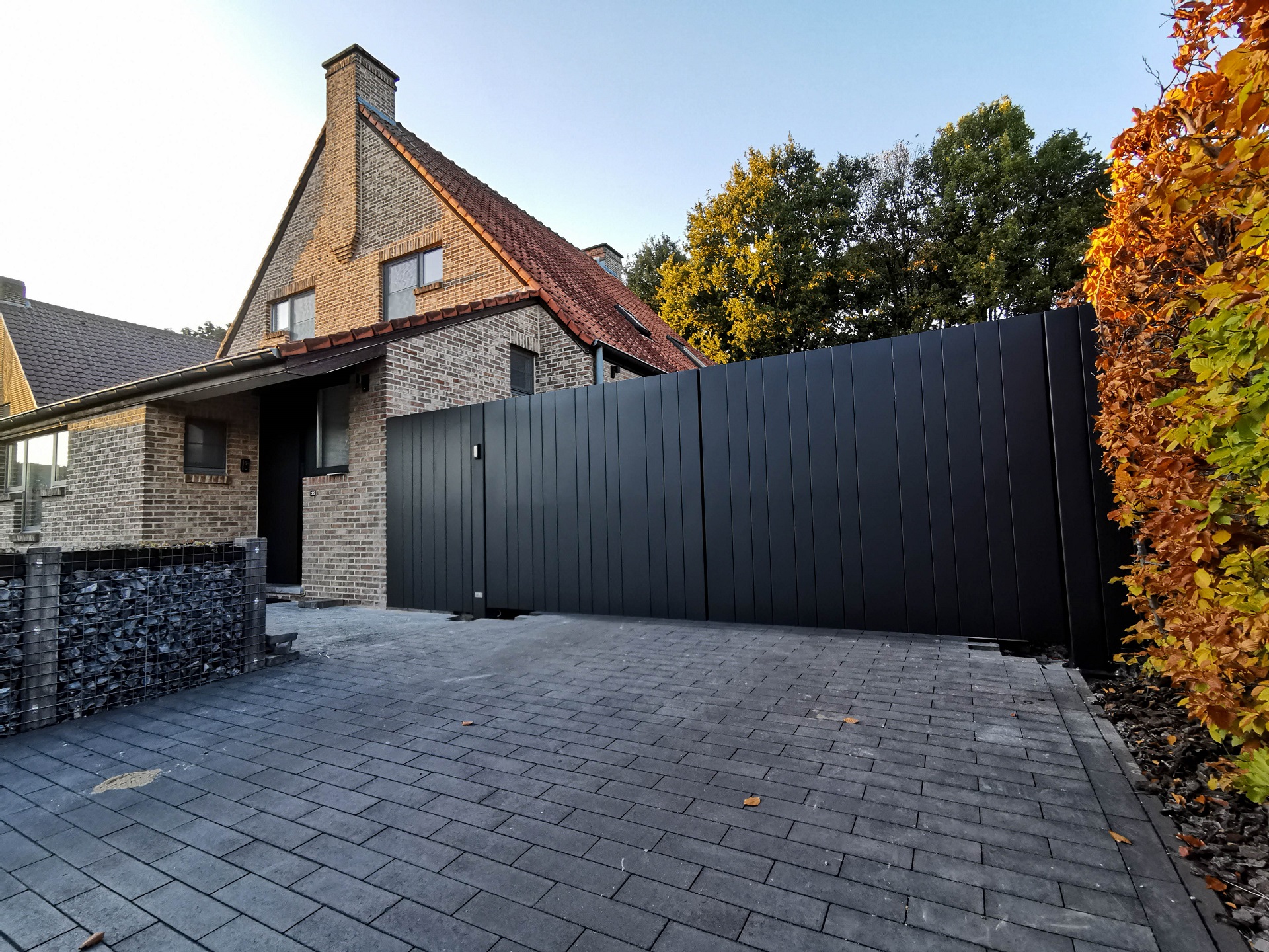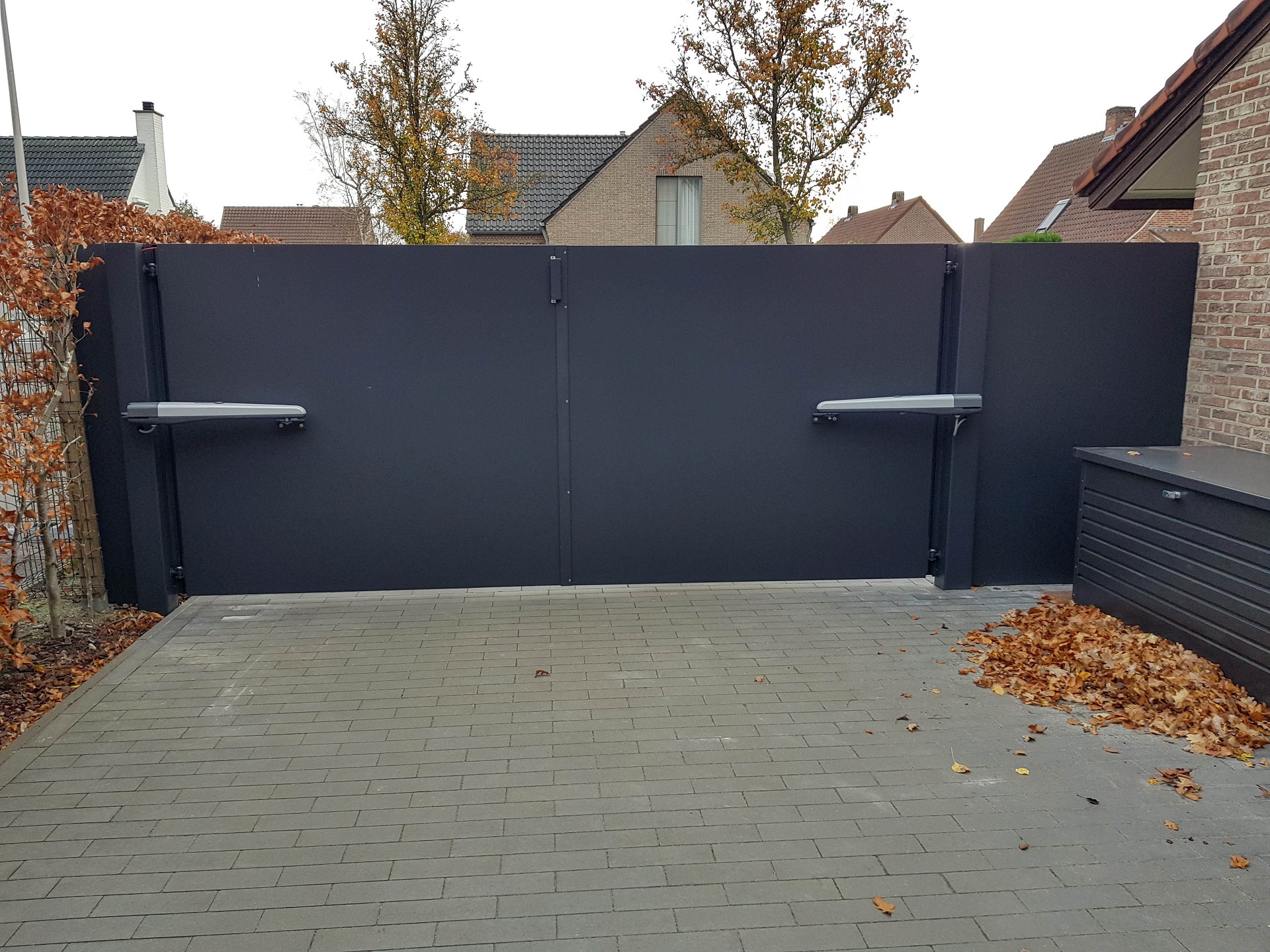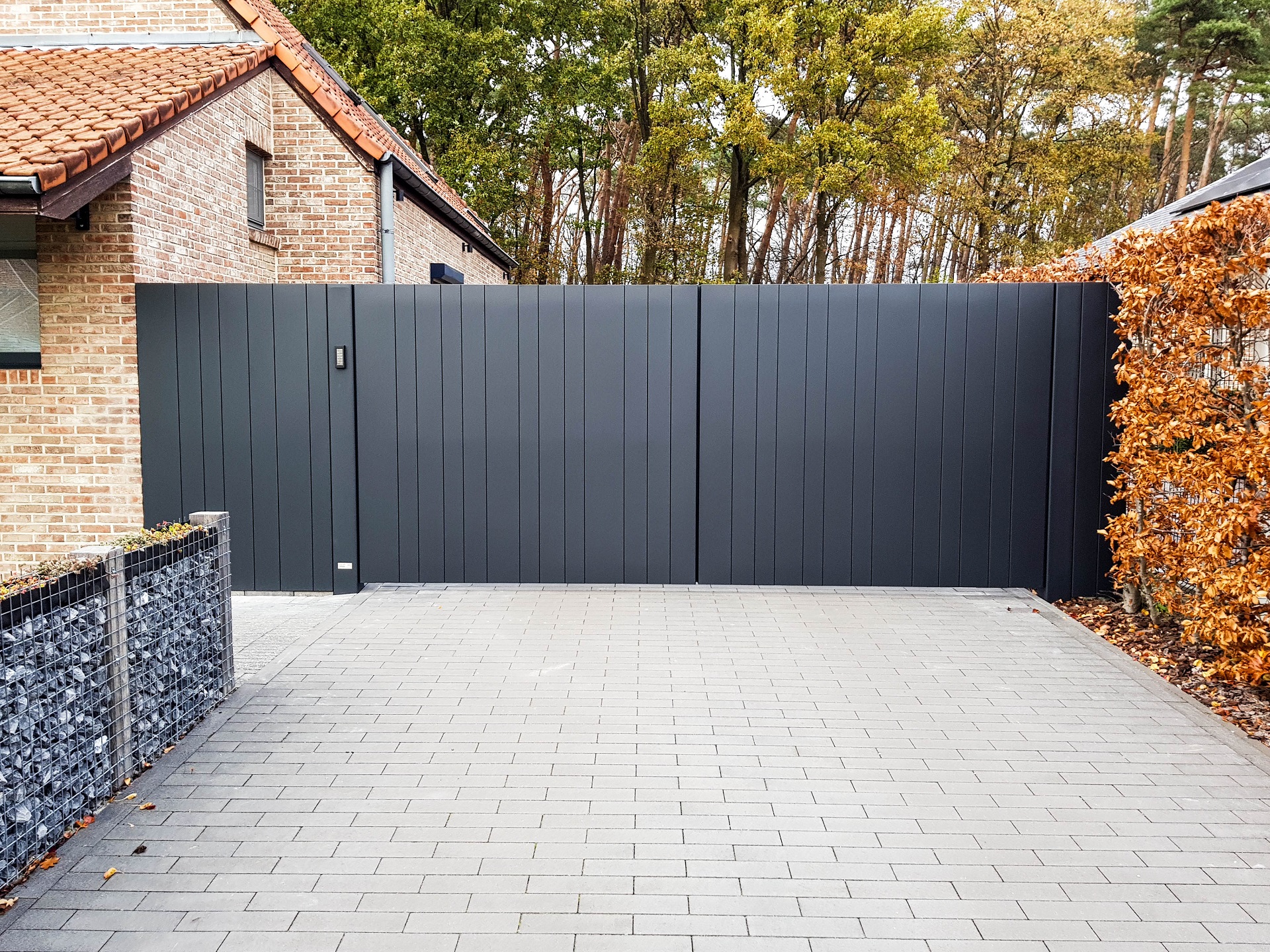 Aluminium vleugelpoort met vast stuk in stijl Lamels - Hasselt